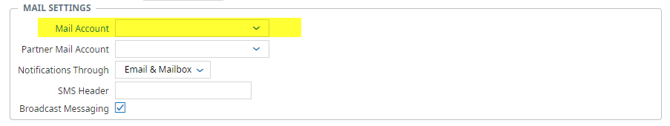 Clicking on the Mail Account link will bring you to the area to add/edit/review your mail accounts. Once your Mail Account is built, you will apply it by selecting it in this drop-down.