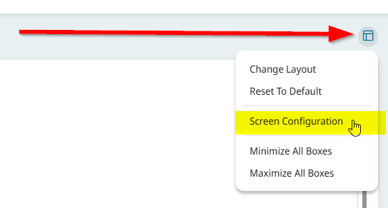 - Click on the Screen Configuration icon on the top right of your dashboard and choose Screen Configuration.
