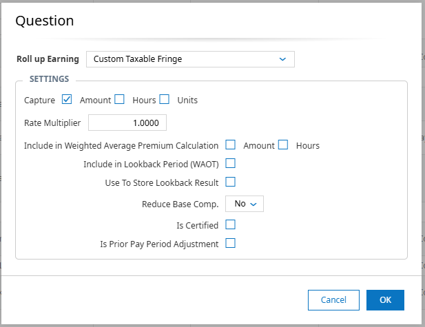 2. Use the Custom Taxable Fringe roll-up type