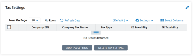 3. Custom Taxable Fringe earnings will require all tax settings to be manually added. Click on Add Tax Setting, choose the taxability, and select the tax codes