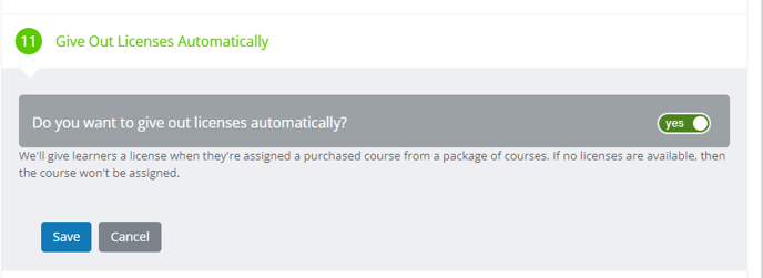 - Completing this function will automatically assign any available licenses to employees when they are assigned a course. The employee will not receive the course or the license if there are no available licenses. If you have courses automatically assigned to new hires, this will effectively assign them the license when they are hired.